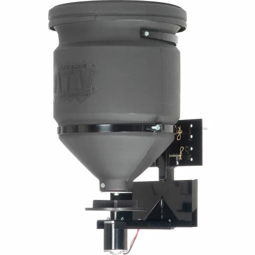 15 Gallon Capacity Spreader features black powder coated steel framework that resists rust and corrosion, and a quick detach mounting bracket for easy installation. Hopper empties completely and adjustable shut-off gate regulates the amount dispersed. 12V battery wiring kit allows easy on/off control from the driver’s seat. All installation hardware is included. Non-Returnable, 1 Year Limited Warranty.