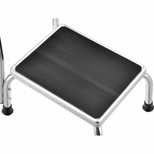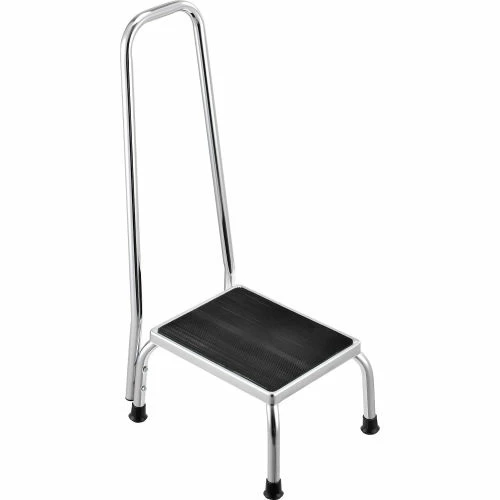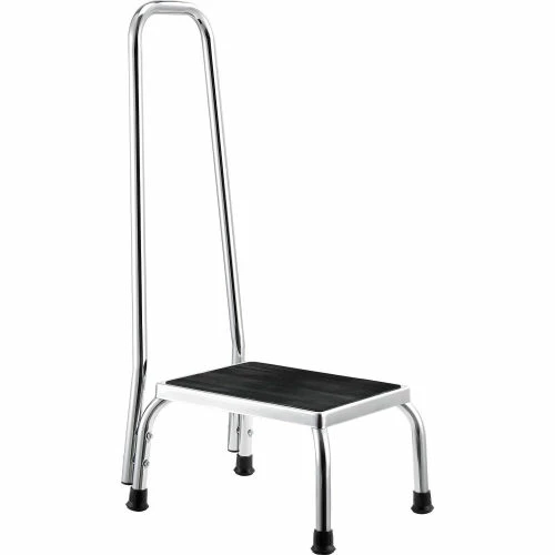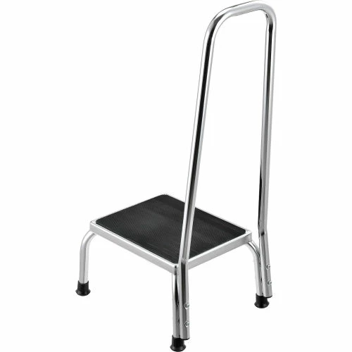 The chrome steel construction on this medical step stool is durable and attractive. The non-skid, ribbed rubber platform provides stability, as do reinforced rubber tips on the legs.