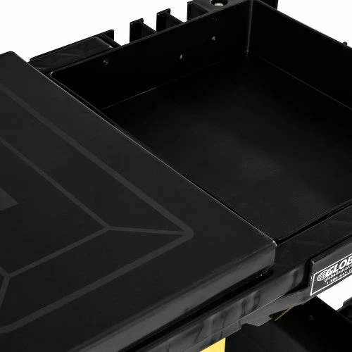 This high-density plastic janitorial cart holds everything, is easy-to-clean and withstands constant heavy use. With 3 sturdy shelves, mop and broom holders and a front platform that holds a 20 gallon waste can or most mop buckets, this janitorial cart is fully featured to save time and effort. Rugged 25 gallon zippered vinyl bag permits easy emptying and attaches securely to cart; Hinged Lid covers vinyl bag to hide waste or laundry collection. Molded-in grip handle and large 8″ rear wheels and 3″ front swivel casters allow easy maneuverability, even in tight areas. Cart measures 48-1/2″L x 20″W x 39″H. Shelf dimensions – Bottom 32″ x 18″ x 2″, Middle 12-1/2″ x 15″ x 2″, Top 12-1/2″ x 15″ x 3″. Wringer bucket and supplies sold separately. Requires assembly