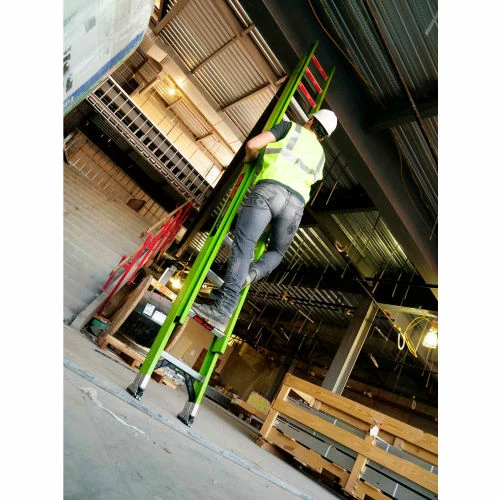 - Patent-pending Hi-Viz green rail prevents catastrophic accidents caused by people who walk or drive into an extension ladder while in use