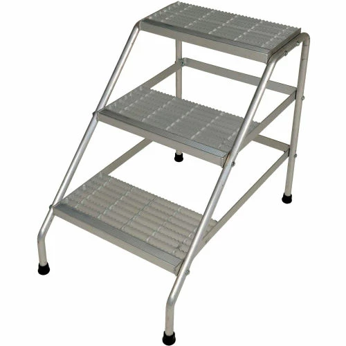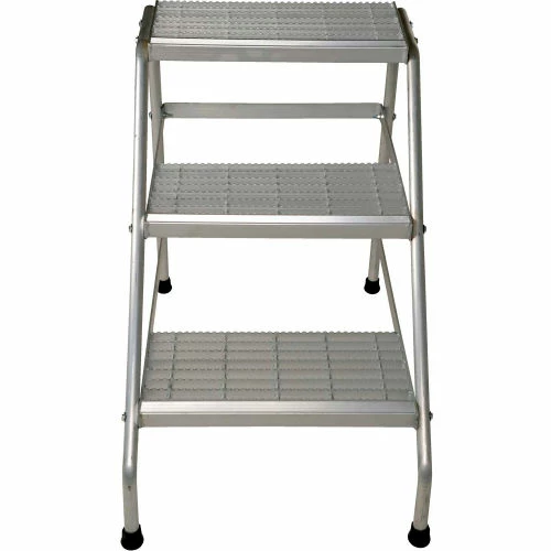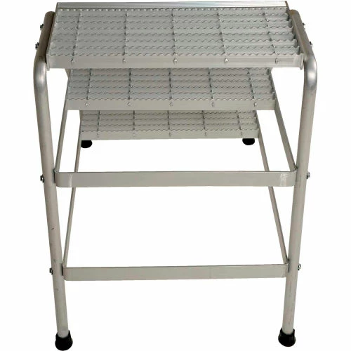 This Aluminum Step Stand is Ideal for industrial or commercial applications. It is lighter than comparable steel models. Open step design includes extra heavy duty serrated surface for traction. With rubber tipped legs, this step ladder is ideal for use on many types floors.