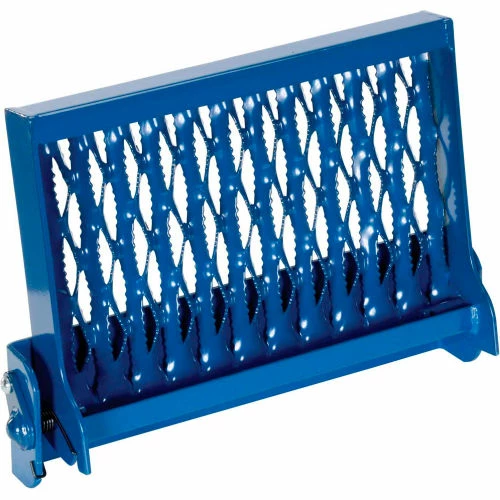 Spring-loaded steel step automatically flips to the vertical position when not in use. Step is steel with powder coat blue finish and has a serrated surface for traction. Two 7/16″ diameter mounting holes included. Fasteners are not included.