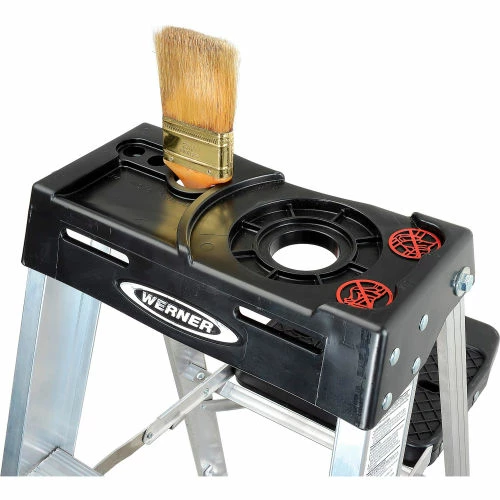 These Werner® aluminum ladders are Type 1A 300 lb. rated. Extra Heavy Duty typical uses: Industrial Construction, Building, Roofing and General Contracting. Includes Fiberglass tool tray top, Unique “H” spreader with hand grip on 4′ and 6′ ladders for easy one handed carry and close.